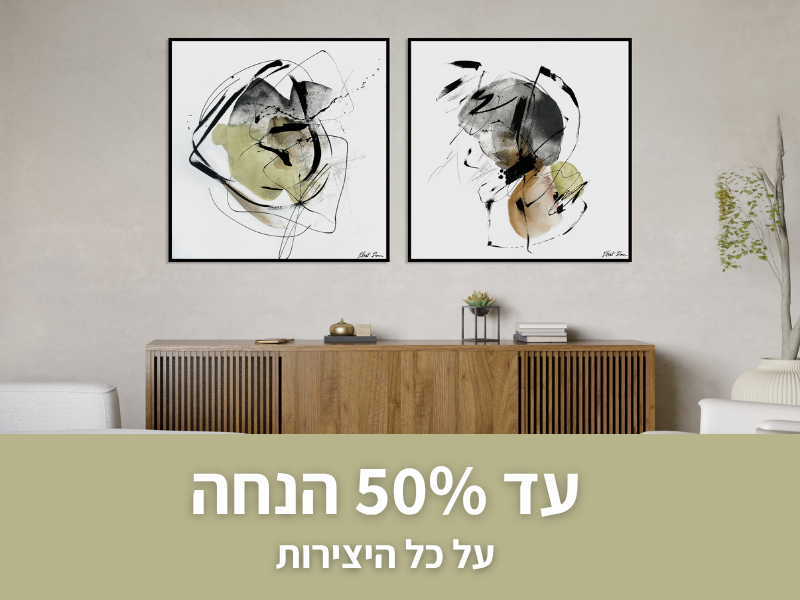 הגלריה שלי בדיזיין סנטר היא המקום להתרגש מהאמנות בלייב – לראות את היצירות בגודל מלא, להרגיש את הצבעים ולהתרשם מהסגנונות השונים מקרוב. הסטודיו בקיבוץ מיועד לאיסוף בלבד, ללא תצוגה, אבל הוא מלא באווירה יצירתית והשראה.