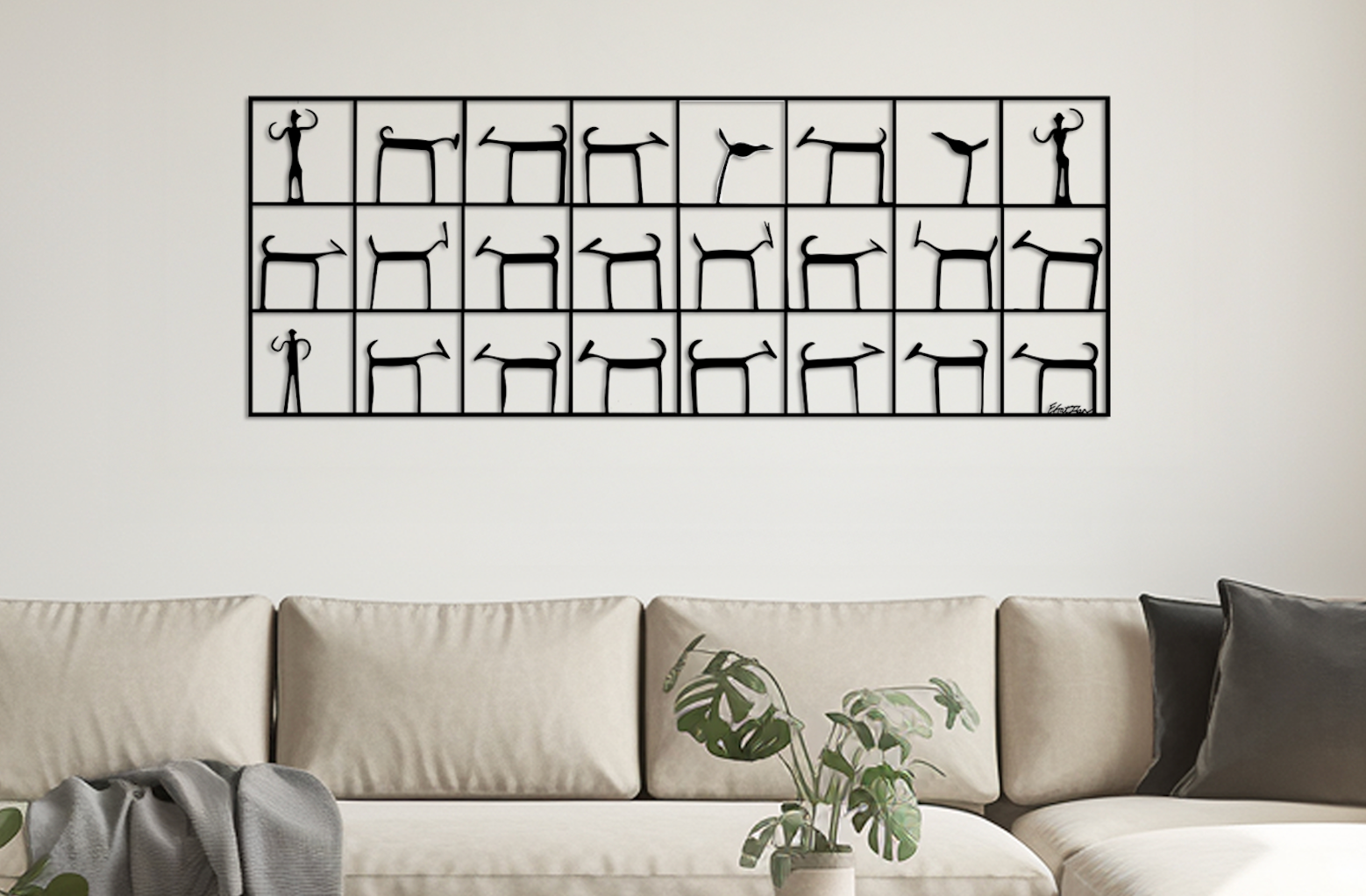 יצירות ברזל הבוססות על קו אחד רציף, שמייצר דימוי מדויק ופשוט בו-זמנית. החומר המינימלי והצורה הנקייה מאפשרים ליצירה להשתלב בקלות בכל סגנון עיצוב, ולהוסיף לקיר עניין ואופי בלי להעמיס על החלל.